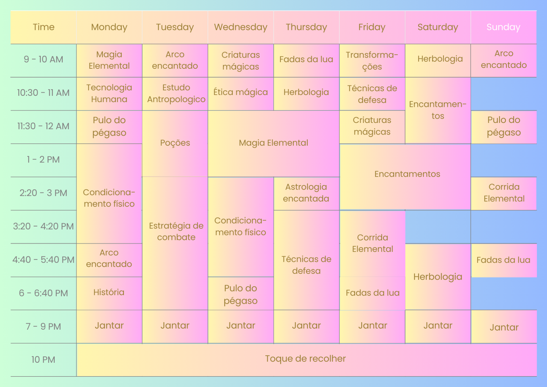 Além das aulas regulares, Elysium oferece atividades extracurriculares que permitem que os alunos explorem ainda mais suas habilidades mágicas. Os estudantes podem participar de clubes de magia, treinamentos especiais e competições amistosas. Também há um salão de práticas onde os alunos podem aprimorar suas habilidades em um ambiente seguro e supervisionado. Os dormitórios de Elysium são aconchegantes e personalizados para cada fada, com quartos individuais decorados com cores vibrantes e móveis elegantes. Os corredores são adornados com obras de arte mágicas e murais inspiradores que celebram a magia e a união das fadas.